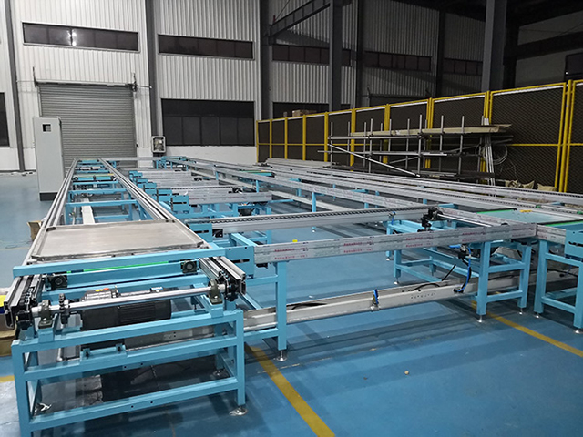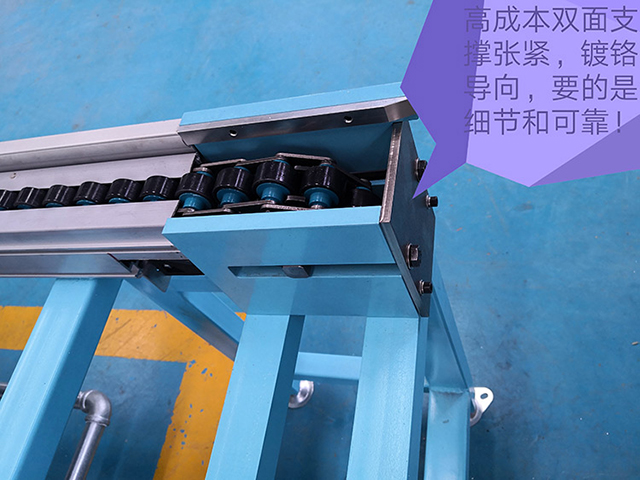 倍速鏈生產(chǎn)線主要用于裝配及加工生產(chǎn)線中的物料輸送,其輸送原理是運(yùn)用倍速鏈條的增速功能,使其上承托貨物的工裝板快速運(yùn)行,通過阻擋器停止于相應(yīng)的操作位置;或通過相應(yīng)指令來(lái)完成積放動(dòng)作及移行、轉(zhuǎn)位、專線等功能。