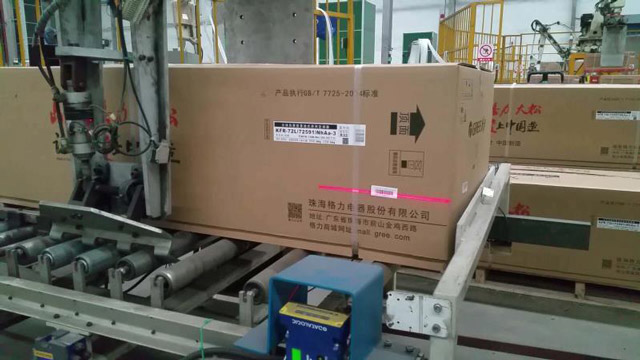 本項(xiàng)目由我公司于2015年底起,歷經(jīng)半年,在蕪湖格力率先自主研發(fā)成功并逐步完善,至今已有七條線正常運(yùn)行,武漢格力的樣板線也已正常運(yùn)行。項(xiàng)目分為兩部分,一是在檢漏段將條碼與生產(chǎn)數(shù)據(jù)庫進(jìn)行對(duì)比,將不合格品剔除到返修線,達(dá)到預(yù)先篩選的目的;二是在機(jī)器人抓取段,掃碼槍讀取條碼后機(jī)器人再抓取,滿垛后自動(dòng)將數(shù)據(jù)堆棧并傳送給上位生產(chǎn)數(shù)據(jù)庫,對(duì)不合格品進(jìn)行記錄并報(bào)警給人工處理。工控機(jī)系統(tǒng)涉及開發(fā)新的程序和界面, 修改PLC與機(jī)器人控制程序,并與掃碼槍和MES系統(tǒng)緊密配合,實(shí)現(xiàn)自動(dòng)掃碼上傳。